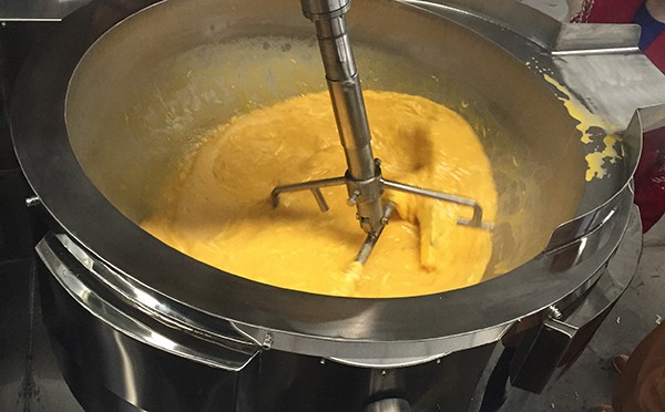 熬煮糖浆用夹层锅怎么选择?熬糖用锅,利用蒸汽加热的蒸汽夹层锅,可以选择蒸汽型带有搅拌器夹层锅。蒸汽夹层锅不仅用于糖果生产,而且还广泛应用于糕点馅料的熟制、搅碎成泥等生产操作中(如枣泥、豆沙馅的制备等)。食品厂用化糖机械(夹层锅)与设备主要有两种:一是利用明火加热的化糖锅;二是利用蒸汽加热的蒸汽夹层锅。